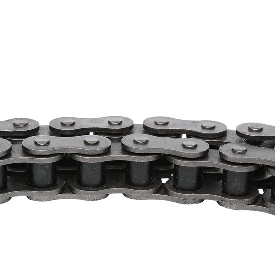 Roller chains are a type of chain used for transmitting mechanical power and are a kind of chain drive. They are widely applied in household, industrial and agricultural machinery, including conveyors, plotters, printing machines, automobiles, motorcycles, and bicycles. It is composed of a series of short cylindrical rollers linked together and driven by a gear called a sprocket. It is a simple, reliable and efficient power transmission device. Compared with belt drive, it has no elastic sliding, can maintain an accurate average transmission ratio, and has a higher transmission efficiency. The chain does not require a large tension force, so the load on the shaft and bearings is relatively small. It will not slip, has reliable transmission, strong overload capacity and can work well under low speed and heavy load.